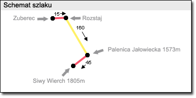 Wraz z nabieraniem wysokości żółty szlak przewija się na stronę Doliny Przybyskiej. Po przecięciu Zadnich Zuberskich Koszarzysk następuje finalne podejście na Palenicę Jałowiecką, podczas którego otwierają się widoki na otoczenie Kotliny Zuberskiej.
