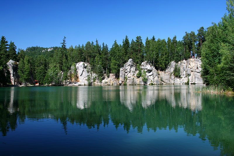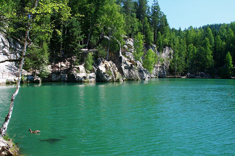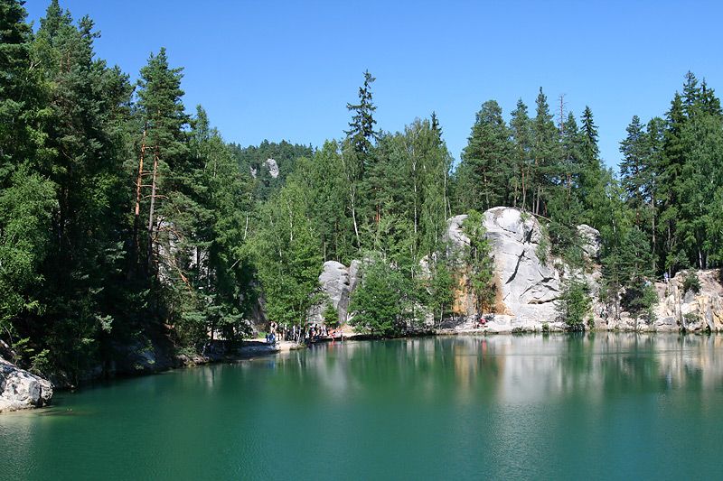 Zaraz po wejściu do skalnego miasta otwiera się widok na urocze jeziorko, które wypełnia teren dawnej piaskowni. Wokół jeziorka prowadzi niebieski szlak, mający rekreacyjny charakter. Obejście jeziorka warto pozostawić sobie jako zwieńczenie wycieczki po Adrszpaskich Skałach, już po zwiedzeniu właściwej trasy turystycznej.