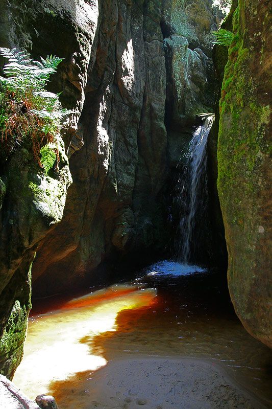 Żółty szlak prowadzi dalej przez Wilczy Wąwóz do Teplickich Skał. Umożliwia on zwiedzenie obydwu skalnych miast bez konieczności dwukrotnego kupowania biletów. Kontynuując zwiedzanie trasy okrężnej wokół Adrszpaskich Skał należy wrócić do Małego Wodospadu.