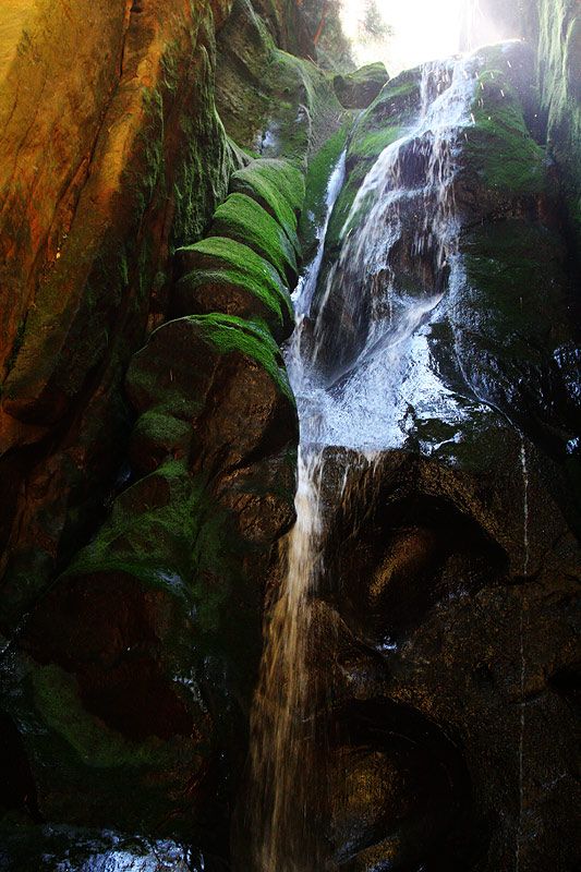 Kolejnym charakterystycznym miejscem na trasie jest rozstaj przy Małym Wodospadzie. Swój początek ma tutaj żółty szlak prowadzący do Wielkiego Wodospadu oraz Adrszpaskiego Jeziorka.