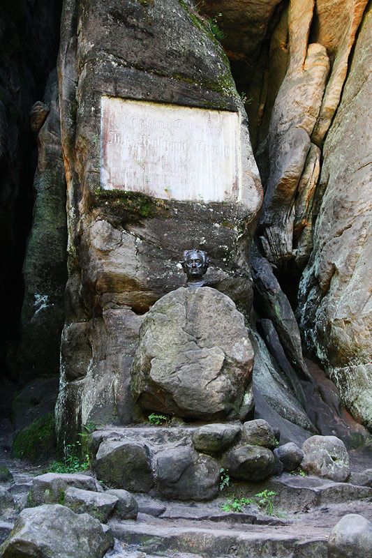Podejście do Wielkiego Wodospadu prowadzi w części po kamiennych schodach. Przed Wielkim Wodospadem dochodzimy do popiersia J.W. Goethego, które upamiętnia jego wizytę w Adrszpaskich Skałach w 1790 roku. Powyżej Wielkiego Wodospadu znajduje się niewielkie Adrszpaskie Jeziorko, po którym można przepłynąć się łodzią. Kasy, w których można kupić bilety na rejs znajdują się przy jeziorze. Podejście do jeziorka wiedzie po wąskich, metalowych schodach.