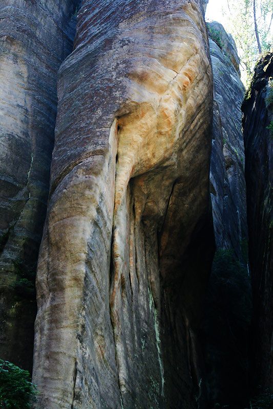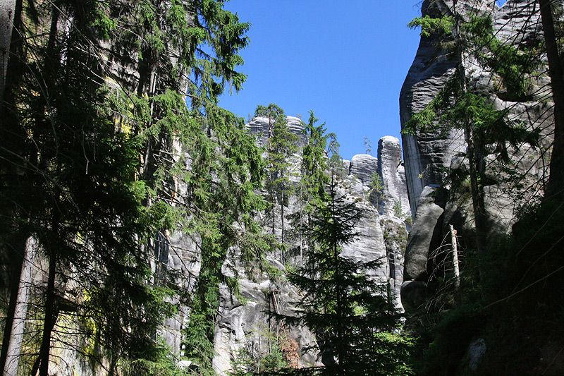 Za Rynkiem Słonia skalny wąwóz wije się ku dalszej części Adrszpaskich Skał, gdzie najciekawszymi formacjami są Ząb Karkonosza, Diabelski Most oraz Wieża Elżbiety.